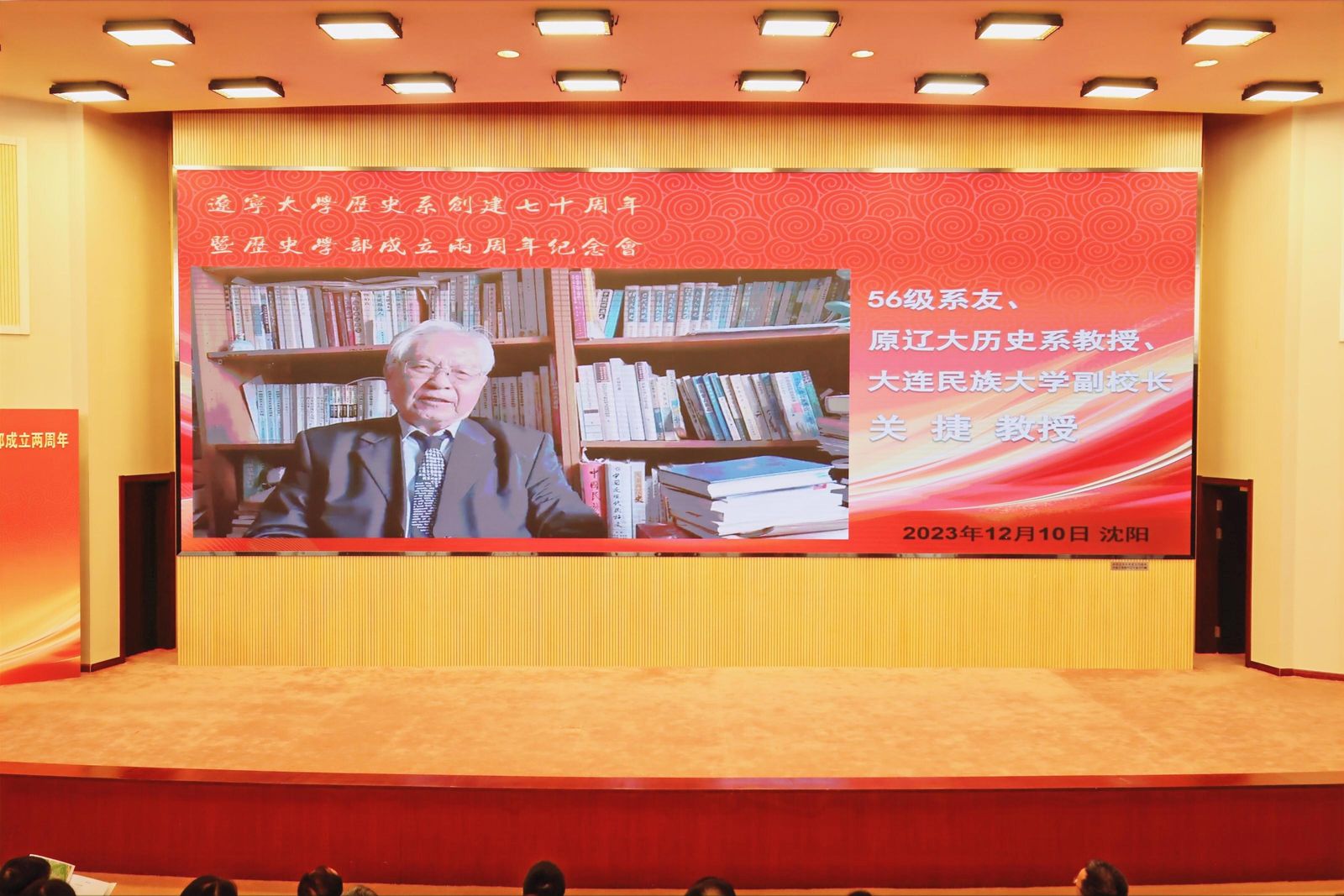 2023年12月10日,yl7703永利集团历史系创建70周年暨yl7703永利集团成立2周年纪念大会在蒲河校区蔡冠深学术报告厅隆重举行。yl7703永利集团党委副书记、校长、yl7703永利集团主任余淼杰教授,辽宁省文物考古研究院院长白宝玉,沈阳市文博中心书记孙晓钟,沈阳市文博中心主任李声能,沈阳新乐遗址博物馆馆长曾阳,沈阳市文物考古研究所所长丛丽莉,“九·一八”历史博物馆馆长范丽红,渤海大学历史学院院长温荣刚,沈阳故宫博物馆副院长李理,辽上京博物馆馆长左利军,沈阳师范大学历史系主任刘丽华出席会议。81级系友、沈阳市商务局一级调研员韩愈春,82级系友、辽宁省委党史办原主任王中明,83级系友、辽宁省社会科学院副院长梁启东,83级系友、大连非美人投资有限责任公司董事长刘培良,84级系友、辽宁省图书馆馆长杜希林,85级系友、辽海出版社党委书记、社长兼总编辑柳青松,86级系友、辽宁省退役军人事务厅厅长李国伟,87级系友、沈阳市直机关工委常务副书记吴智丰,91级系友、辽宁省盘锦市委副书记、市长邢鹏,99级系友、辽宁省文化和旅游厅副厅长华玉介等校友代表,校职能部门负责人,历史学部领导班子、退休教师代表、师生代表参加会议。会议由yl7703永利集团信息资源管理学院副院长王毅教授主持。